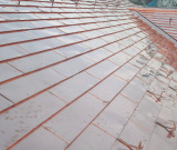 耐久性に優れています。軽量の為、 リフォームに於いて、既存屋根を撤去しないカバー工法に最適です。 又、軽量により家屋への負荷が減りますので耐震性の向上にも繋がります。 各社特徴のある商品がございます。施工前にサンプル、カタログ等でご確認頂けます。 尚、写真はアイジー工業の断熱性、遮熱製に優れた「ガルテクトR」葺き上がりを一層引き立てる卓越した質感を誇る 特殊な「ちぢみ塗装」を採用した、意匠性に富んだ屋根材です。
